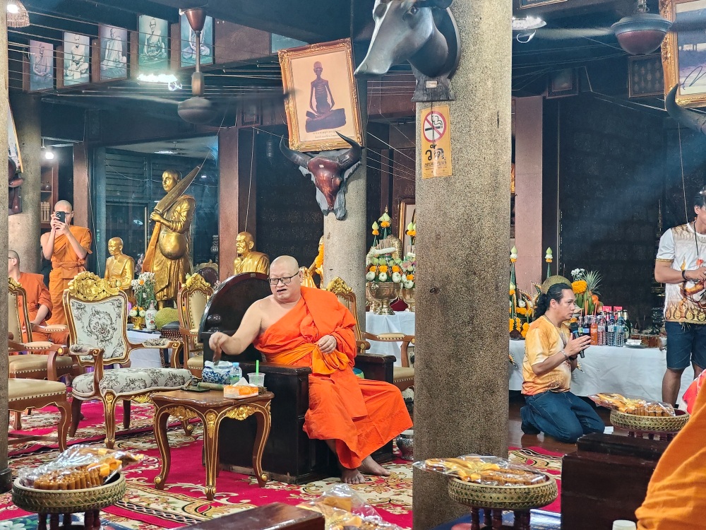 ในงานพิธีถือเป็นไปด้วยความสุขความเจริญอบอุ่น เริ่มต้นด้วยพิธีบวงสรวงเทพยาดาฟ้าดิน พระสงฆ์เจริญพระพุทธมนต์ อาจารย์ป๊อบพระสีวลี24ชั่วโมงร่วมงานนำกล่าวศาสนพิธีตามลำดับ ถัดจากนั้นถวายภัตตาหารเพล ไหว้พานครู เสริมความเป็นสิริมงคล โดยมีพระเดชพระคุณชั้นสมณศักดิ์ เมตตาเจริญชัยมงคลคาถา ดังรายนามชื่อดังต่อไปนี้