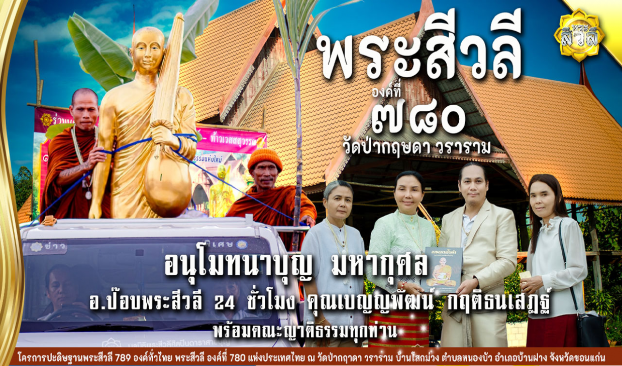 จัดทำรายการหาธรรม แนวละครเพลงคติธรรม สร้างแรงบันดาลใจ โครงการ ประดิษฐาน พระสีวลี ๗๘๙ องค์ ทั่วไทย และพระสีวลีสูง๗๗เมตรวัดป่าม่วงมีชัย ความศรัทธา วิริยะ มุ่งมั่นจัดสร้างพระสีวลี เถระมหาลาภ ศาสนวัตถุ ที่เป็นสื่อ ในการพิจารณา แยกแยะ ความดี และความชั่ว เกี่ยวกับ อนุพุทธประวัติ พระสีวลี ตระหนักถึง การสร้างความดี ทุกรูปแบบ เกิดคุณภาพชีวิตที่ดีขึ้น เมื่อความดี ถูกปลูกฝัง การกระทำชั่วเลว ก็จะ ลด ละ เลิก เกรงกลัว ละอาย ต่อบาป ฉนั้นเกิดมาชาติหนึ่ง อย่าให้เสียชาติเกิด " บุญทำ กรรมชั่วไม่ก่อ"