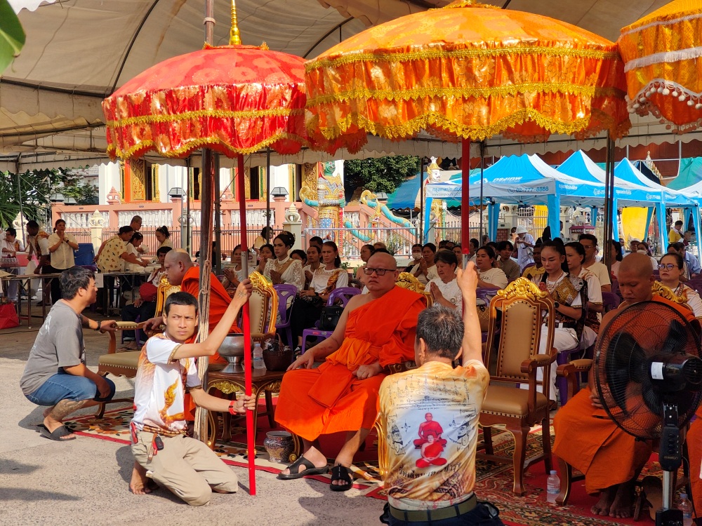 ในงานพิธีถือเป็นไปด้วยความสุขความเจริญอบอุ่น เริ่มต้นด้วยพิธีบวงสรวงเทพยาดาฟ้าดิน พระสงฆ์เจริญพระพุทธมนต์ อาจารย์ป๊อบพระสีวลี24ชั่วโมงร่วมงานนำกล่าวศาสนพิธีตามลำดับ ถัดจากนั้นถวายภัตตาหารเพล ไหว้พานครู เสริมความเป็นสิริมงคล โดยมีพระเดชพระคุณชั้นสมณศักดิ์ เมตตาเจริญชัยมงคลคาถา ดังรายนามชื่อดังต่อไปนี้